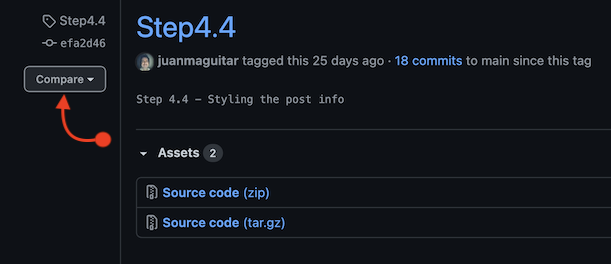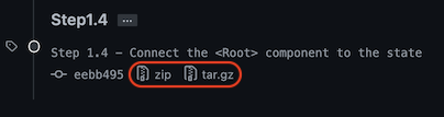 You can also download the code completed up to a particular step by using the zip or tar.gz links for that tagged commit.