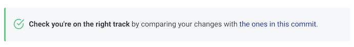 At the end of each lesson (and sometimes within a lesson) you will see a box like this one with a link going directly to the commit that has the changes in that lesson (or that part of the lesson):